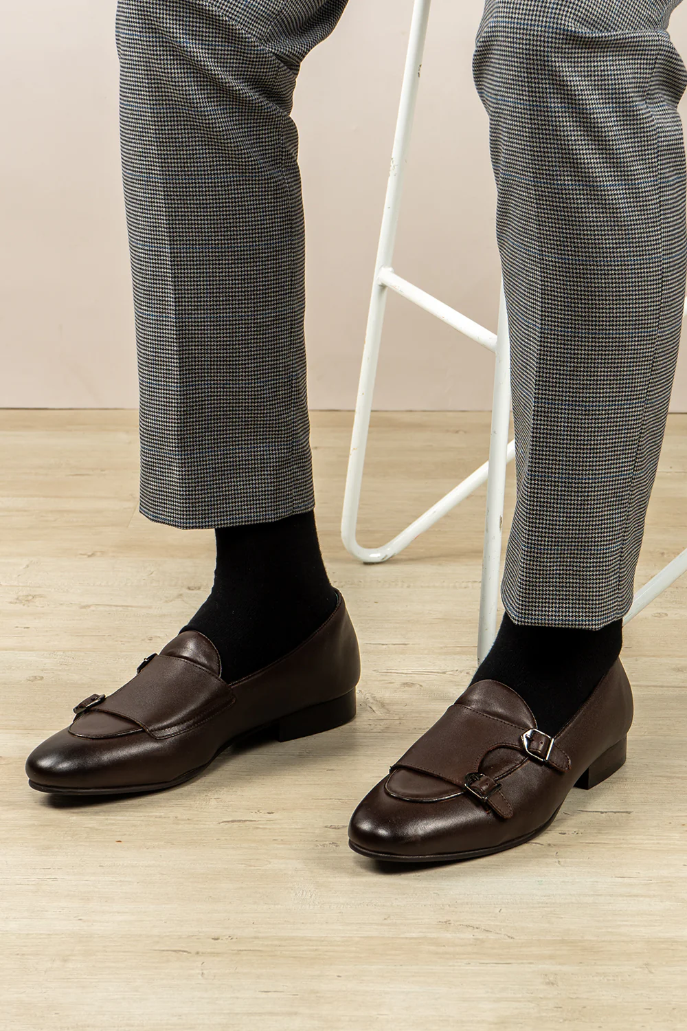 Elevate your style with Clifford Brown, our exquisite brown monk leather loafers. Perfect for the office or any special occasion, these handcrafted loafers exude luxury and sophistication. With its timeless design and superior comfort, Clifford Brown is the epitome of premium footwear.