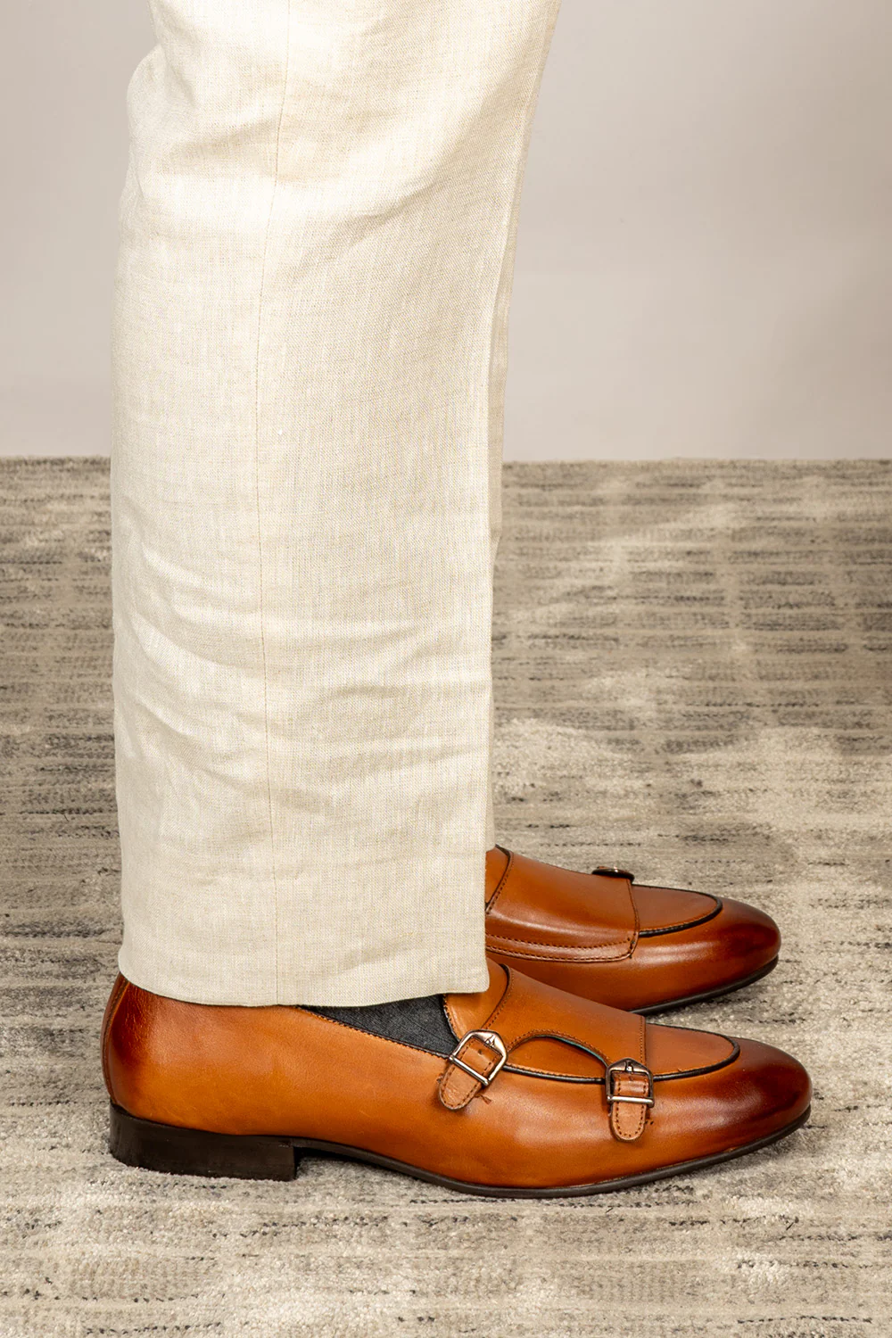 Dress to impress with the sophisticated Clifford Tan monk leather shoes for men. These premium leather shoes from Oswin Hyde are perfect for weddings, the office, or any dressy event. Elevate your style and make a statement of luxury with these exclusive shoes.
