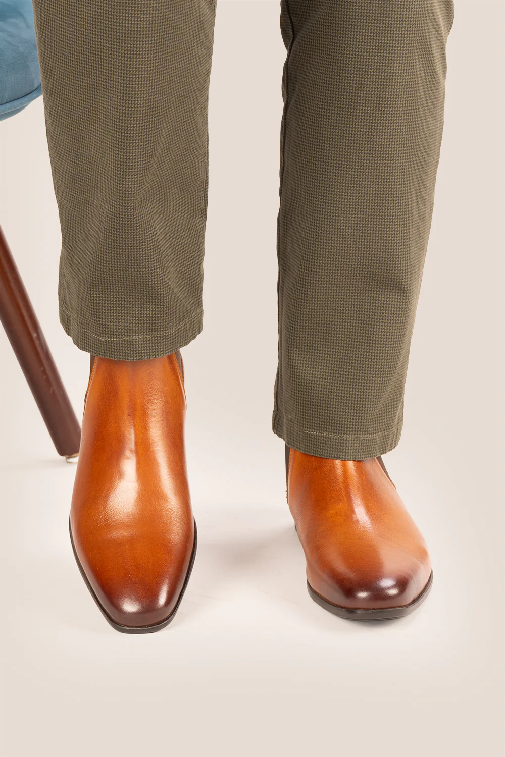 Experience fine craftsmanship with Darwin Tan Leather Chelsea Boots, designed to provide superior comfort and enduring style. Made with premium leather, these boots offer unparalleled breathability, strength and resilience, perfect for any fashionable gentleman. Featuring timeless styling and classic appeal, they exude sophistication and elegance to create a look that is both classic and refined.