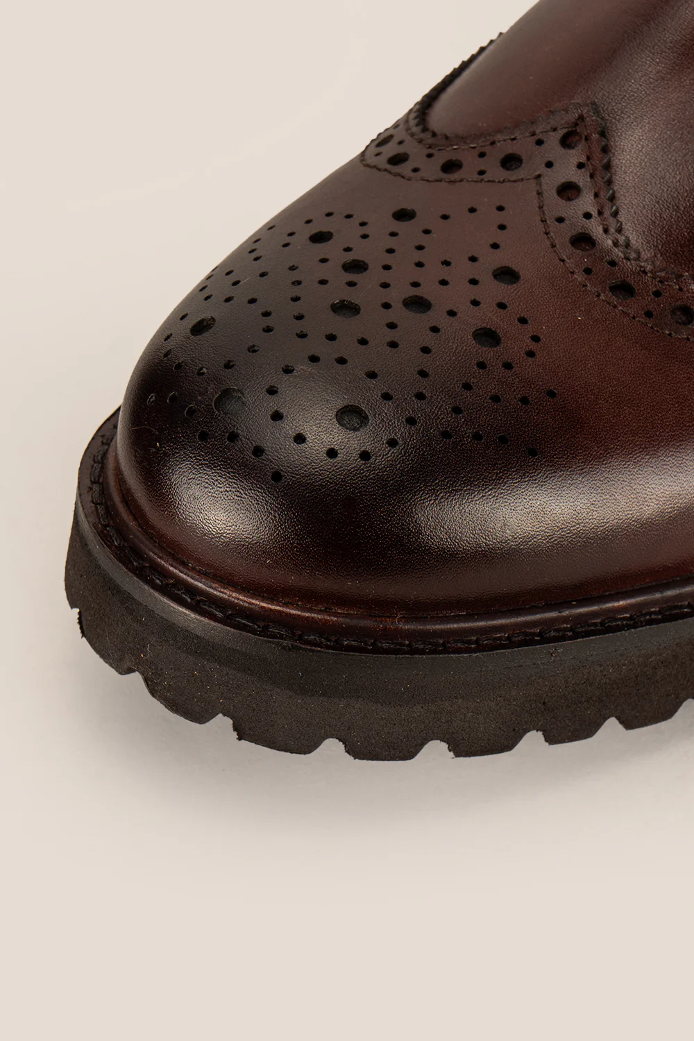 The Grant Brown leather brogue chelsea boot is a timeless classic that's sure to elevate your wardrobe. Perfect for the modern man, this lightweight yet comfortable boot is the ideal everyday staple for any smart casual look. Featuring a timeless design and chunky sole, it will be a style go to for years to come.