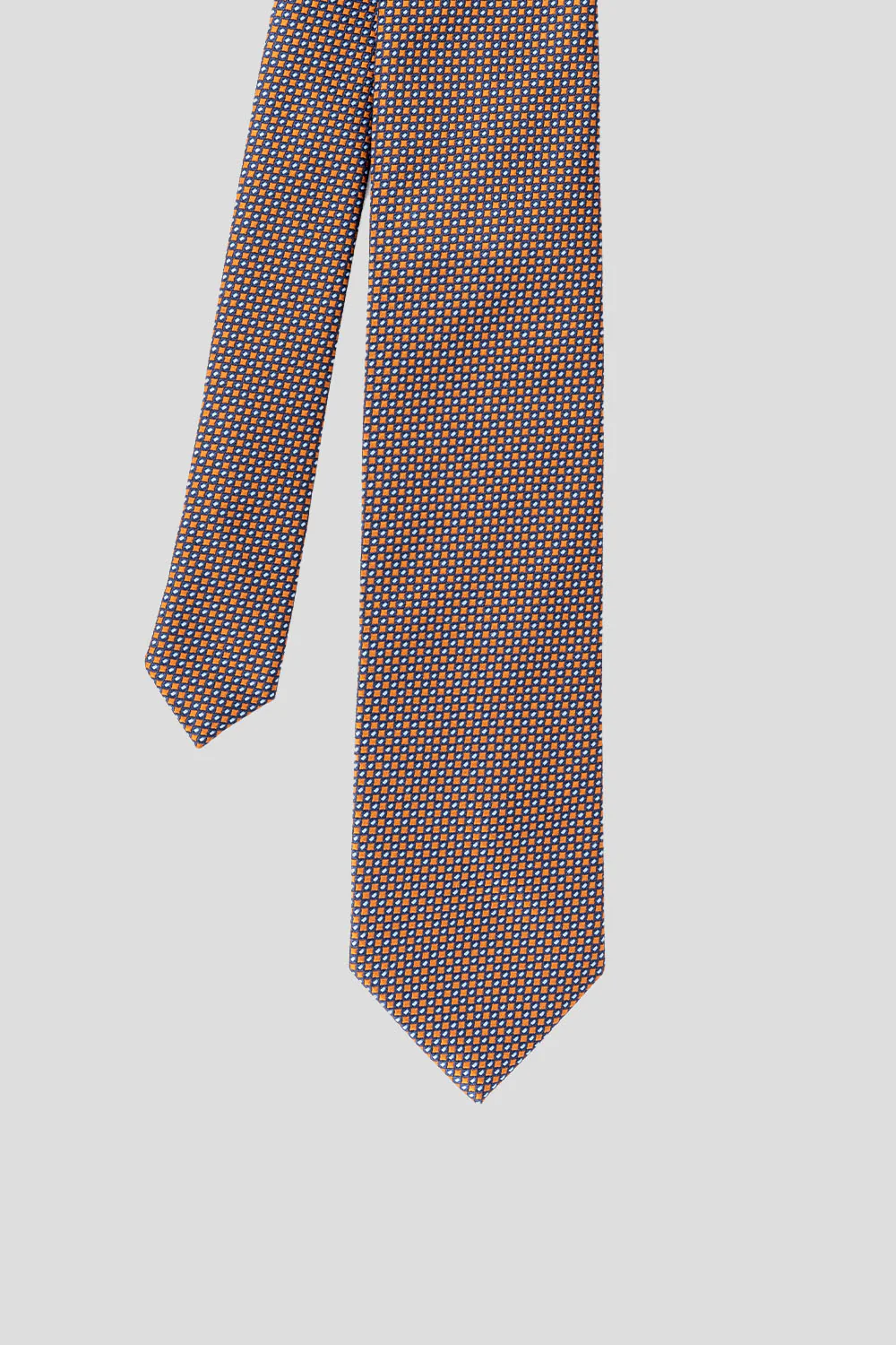 Introducing Harry, the perfect accessory for any special occasion. Crafted from a luxurious blend of copper and navy, this elegant tie is adorned with a subtle geometric print and finished with a 7.5cm width, making it sophisticated enough for a wedding or festive party.