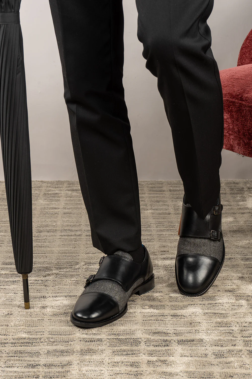 The Oscar Black leather shoes combine classic menswear style with modern, contemporary touches. The luxe tweed uppers and two buckled straps are crafted from premium leather, while the monk brogues complete the timeless look. Each pair is exquisitely designed and crafted, ensuring you never compromise on elegance and luxury.